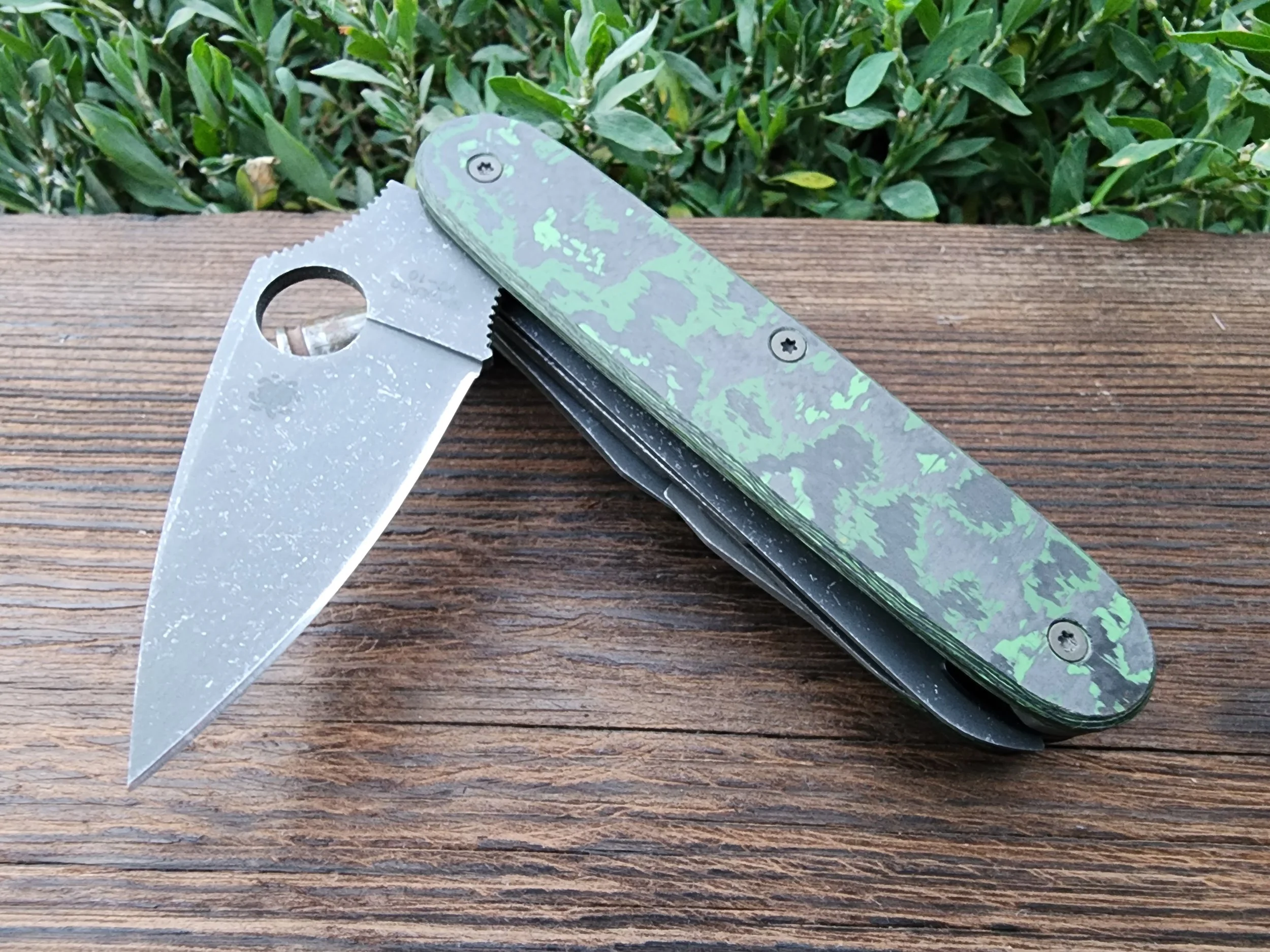 This build is based on the Victorinox Farmer X. The original blade was replaced with Spyderco Dragonfly 2. The tools was acid etched and stone washed. The liners are Black G10 and the scales are W3rktrieb Fat Carbon.