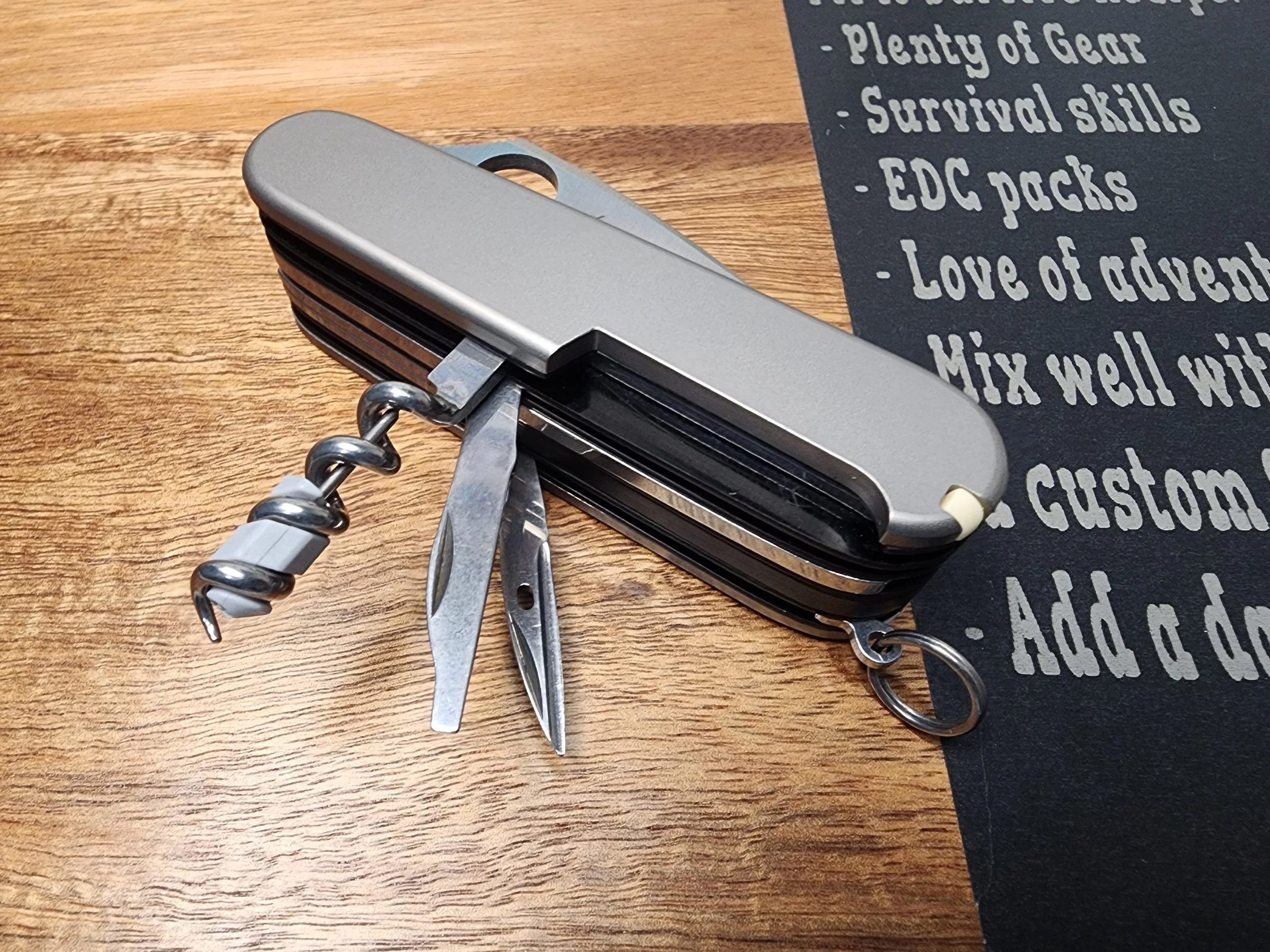 This build is based on the Victorinox Cybertool M. The original blade was replaced with the Spyderco Dragonfly 2. The liners are black G10 and the scales are titanium.